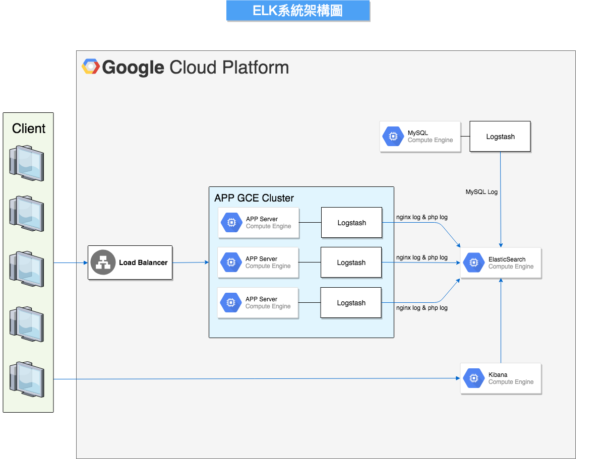 Elastic Search + Logstash + Kibana, 於正式環境建置ELK系統, 幫助正式環境整合及查詢app cluster的所有nginx、php 及 MySQL Log