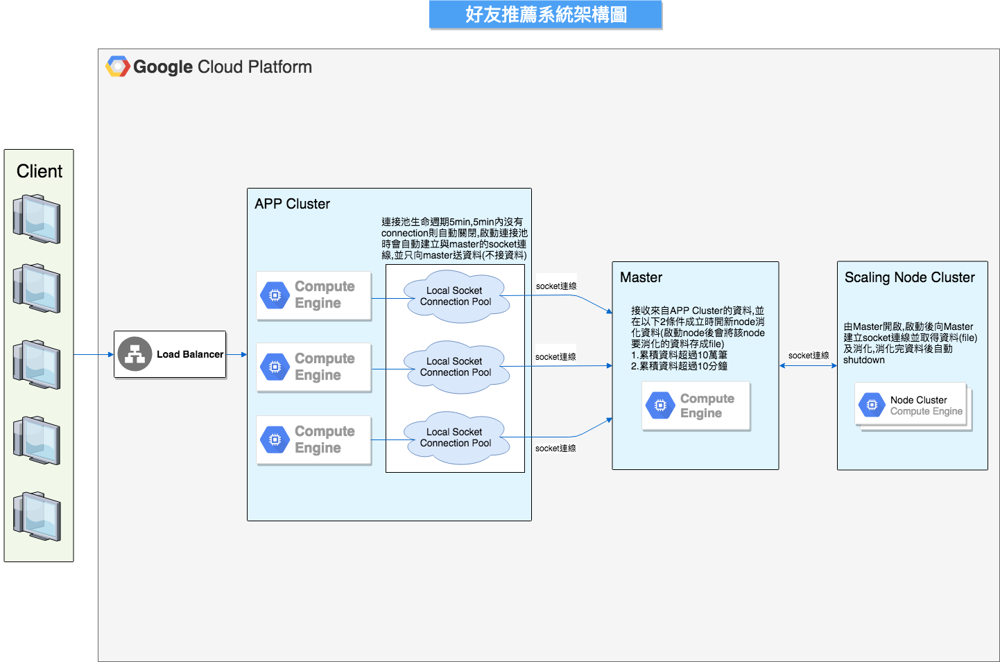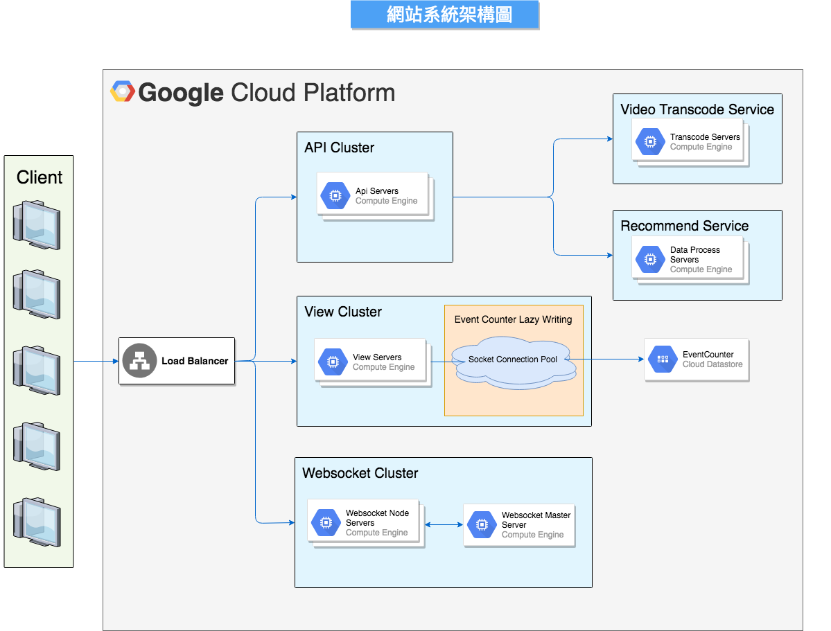 將正式環境建置於此. 並運用 load-balance & autoscaling & GCP SDK & GCE( application,MySQL, Redis) & datastore 建構正式環境
